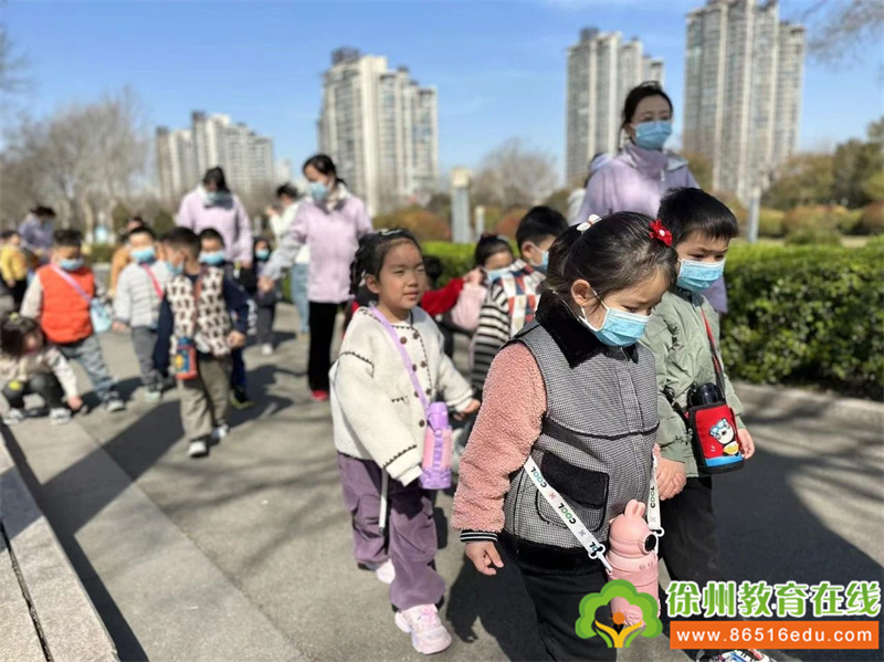 伴随着春风拂面、聆听着雏鸟叽喳,泉山区机关幼儿园春季第一次远足活动,在春分时节正式拉开帷幕。孩子们手牵手整装待发,走近鸟语花香的春日童话。 柔软洁白的玉兰花瓣、花枝如瀑的迎春花丛,孩子们的眼睛被春光点亮,暖意像火苗在童真的眼中舞动。孩子们观察分享着春天的种种发现:蓝天白云、阳光春风、花草树木和灵动的我们。 坚持前进永不言弃、勇敢迈步超越自己!为蓬勃生命力注入温暖的能量! 告别嫩绿的小草,和云龙湖道一声“再见”,待到下周三,我们再相会! 花有重开日、人无再少年。 泉山区机关幼儿园坚持开展“周三远足日”活动,助力孩子们的健康体魄,更为在这珍贵的童年留下绚丽美好的春风一笔。