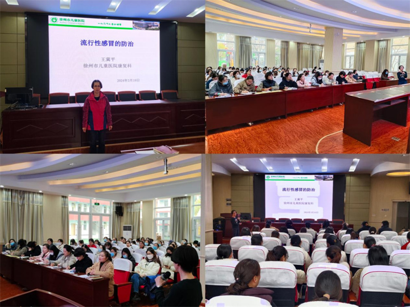 春季万物复苏,随着温度的升高病毒和细菌也随之增多。徐州市儿童医院康复科主任医师王冀平以《流行性感冒的防治》为题,讲解了春节易发传染性疾病流感的相关知识以及对患病的特殊儿童康复照料存在的知识盲点。王主任采用案例剖析的方法,围绕流行性感冒的传播途径、预防方法、临床症状及特殊儿童的护理方法等方面进行了科学专业的讲述,以课堂实录,采用互动与现场示范的形式答疑解惑,从康复专业的角度,为特教中心的老师讲解了很多切实有效的个体化健康护理措施,帮助大家转换角度与思路看问题,从而进一步提升老师们的康复水平。
