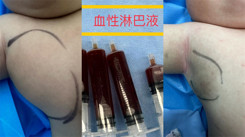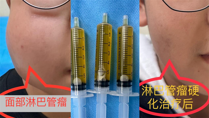 也就是腔内治疗,细针穿刺淋巴管畸形囊腔抽取淋巴液,注入硬化剂,破坏淋巴管畸形囊壁细胞,使淋巴管畸形囊腔向心性萎缩纤维化而被机体吸收消失,所以硬化治疗不会对淋巴管畸形周围重要组织或器官造成影响,但是由于淋巴管畸形发病时间较长、反复感染、反复出血,淋巴管畸形会发生无菌性或有菌性炎症导致淋巴管畸形囊壁增厚,增加硬化治疗次数。简而言之:1、手术治疗复杂、痛楚、有疤痕以及易复发;2、硬化治疗简单、安全、无疤痕以及不复发。