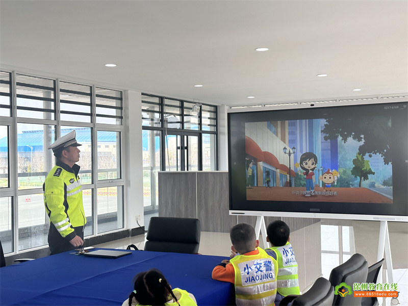 小一班吴沐远小朋友的爸爸是一名非常优秀的交警。吴警官根据幼儿园小朋友的年龄特点,用生动的动画对过马路、乘车安全等交通安全知识进行互动讲解,并通过“我提问你回答”的游戏互动模式与小朋友一起解读交通信号灯、交通标志、安全乘车、安全骑车等交通安全知识。