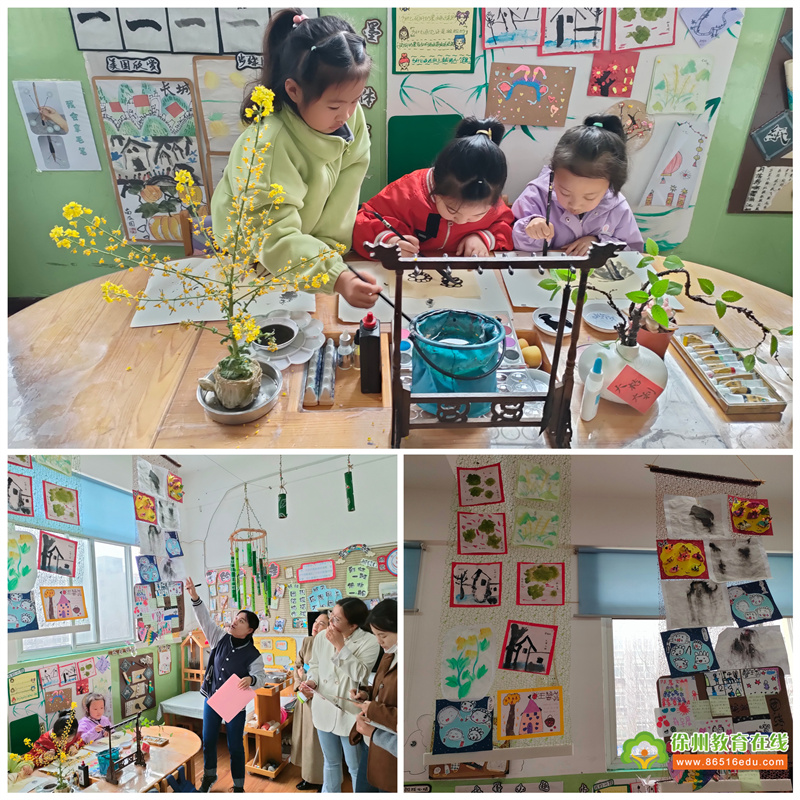 大一班的教师充分发挥自身擅长,将国画融入到班级课程。师幼经过对国画的长期摸索,能看到班上的国风艺术特性痕迹较为明显,对于幼儿艺术能力与素养的培养也颇有成效。教师表示开展活动的价值并不在于孩子的绘画技能有多么熟练,或画出了什么惊人的杰作,而是孩子们对中国清新淡雅的水墨文化愉悦的感受和体验。这种早期审美创造的经验,对孩子们的影响深远,无论是在以后工作还是生活中,都能使他们用审美的情感去认识世界,改造世界。