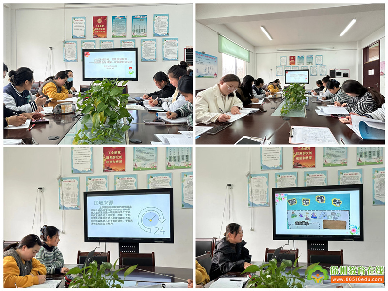 4月2日中午,于主任组织教师开展“班级区域游戏创设心得分享”,助力教师共同成长。各班级教师围绕本班区域活动创设理念、材料投放、活动开展过程中的调整及幼儿参与活动情况等方面进行介绍和总结,全体教师在交流中成长,学习中提高,分享中进步。
