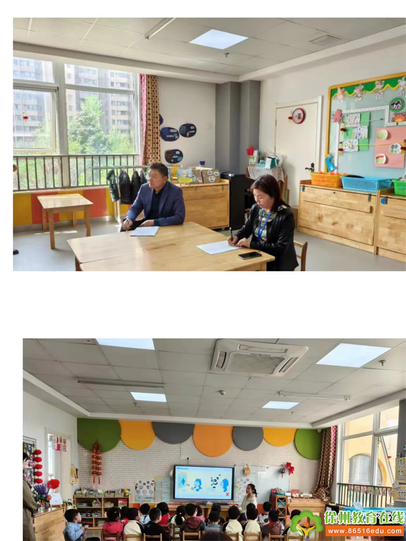 为进一步加强幼儿园的规范管理, 切实提高保教质量,促进幼儿身心健康协调发展。结合本月督导要点,2024年4月15日云龙区教育局第三督导组对云龙区丽城幼儿园进行关于“保教环境创设”、“幼儿身心健康协调发展情况”、“校园食品安全”等方面进行专项督查和指导