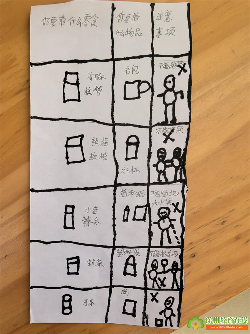 Xx小朋友:我知道,我知道,要带食物和水,还需要带垃圾袋,不能乱丢垃圾。