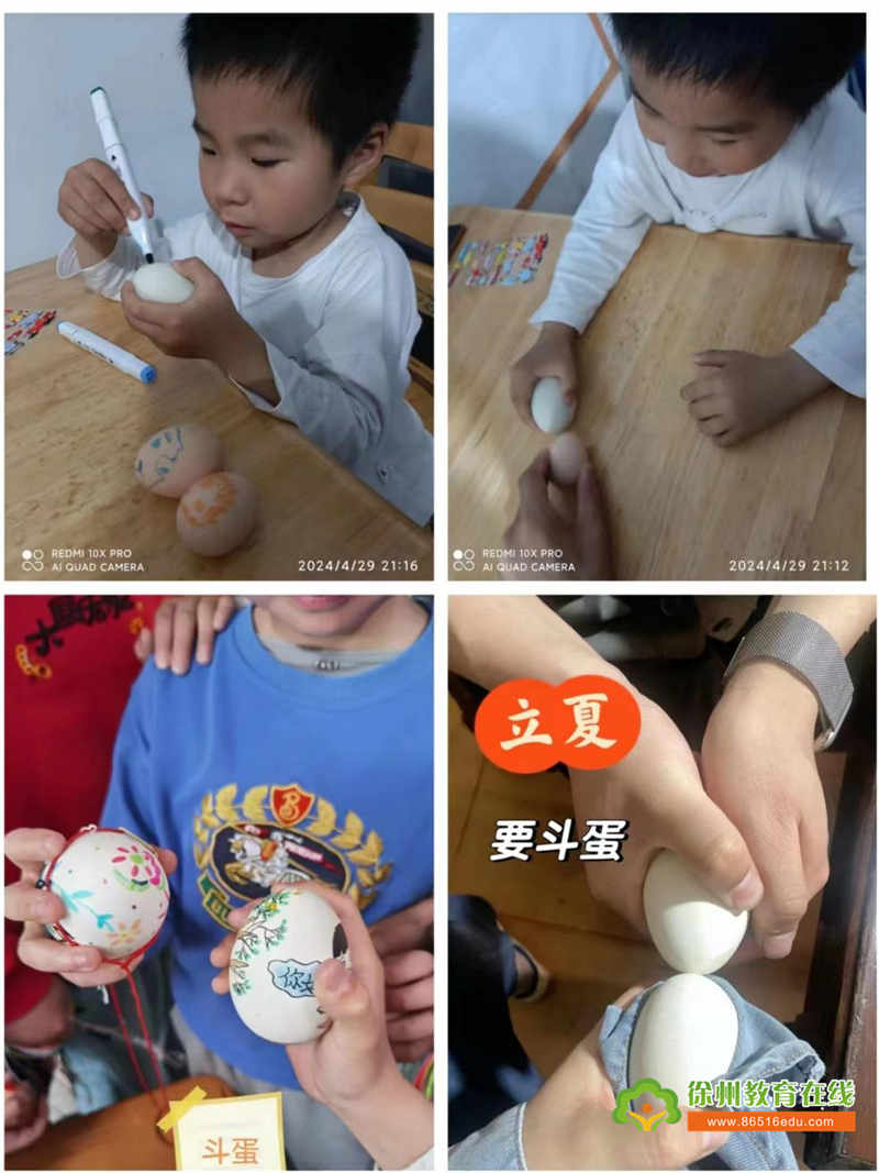 斗蛋是立夏时节的重要习俗。大人们早早地用白水煮上一锅鸡蛋,然后用彩色丝线编织成的网兜装好,让孩子们挂在身上。