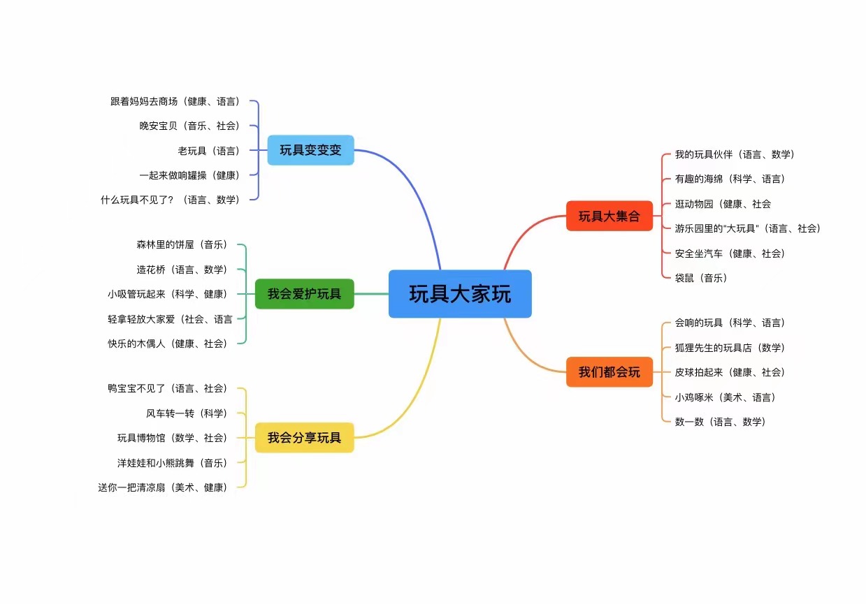 小班组根据幼儿自我意识的逐步增强,开展了《玩具大家玩》主题活动。对于该阶段的幼儿,如何共享玩具、共享空间、共享资源等一系列有关人际交往的问题扑面而来。在这个关键时期,我们可以顺势借助玩具这一幼儿关心的焦点,从各方面给予幼儿发展的鹰架,通过适当的行为支持和适切的情绪疏导帮助他们逐步完成从“我”到“我们”的转变。