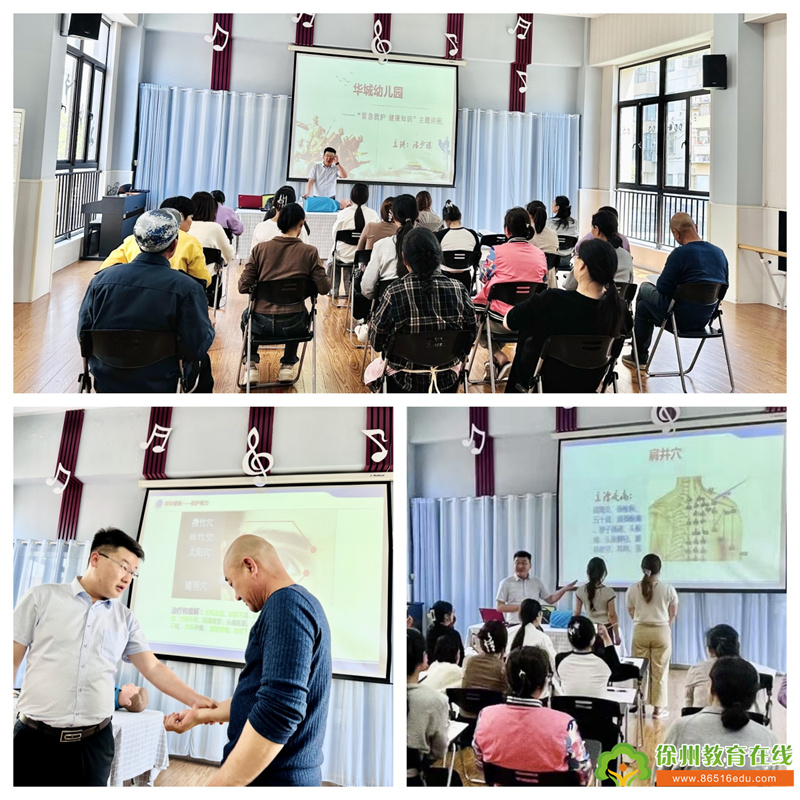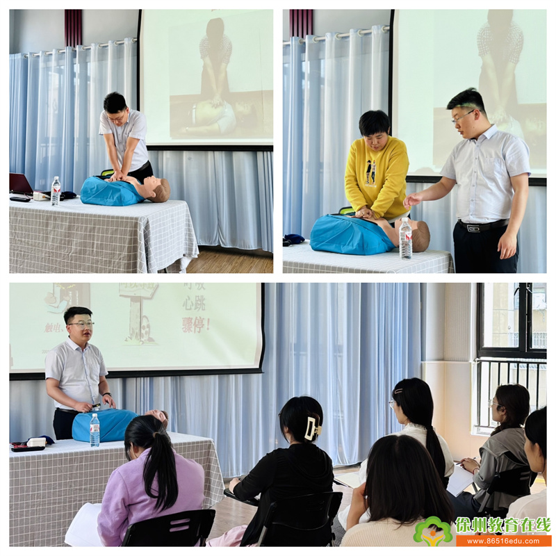 为全面普及和强化急救知识和技能,增强教职工的安全防范意识和应对突发事件的处置能力,掌握急救基本知识和基本操作技能,在突发事件中能运用简单易行的急救知识,最大程度地降低伤害,特邀请南京普康中心潘少谋主任讲师对教职工进行急救知识和职业病预防的专题培训。