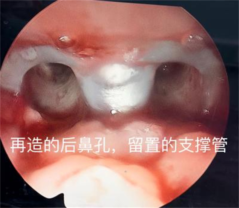 耳鼻咽喉头颈外科主任医师纪尧峰介绍:“先天性双侧后鼻孔闭锁是一种少见的畸形,胎儿在胚胎发育过程中颊鼻膜未吸收消失形成闭锁间隔导致后鼻孔闭锁。出生后双侧后鼻孔闭锁的患儿主要表现为拒奶及周期性呼吸困难。如果不及时治疗,长期的张口呼吸影响面患者体质及颌面骨的发育。由于婴幼儿后鼻孔上缘离前颅底仅一层非常薄的骨板,外侧缘离颈内动脉较近,手术存在明显的风险。在徐州市儿童医院,我们采用鼻内镜下低温等离子后鼻孔成形术,这种手术方式尽量减少后鼻孔周围组织的损伤,减少术后再闭锁的发生,保证了手术的安全性和有效性。”