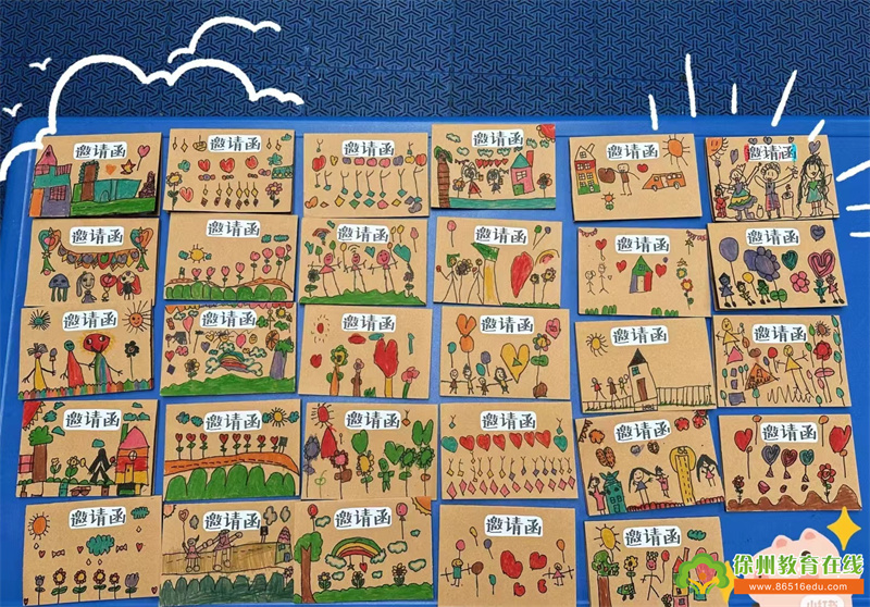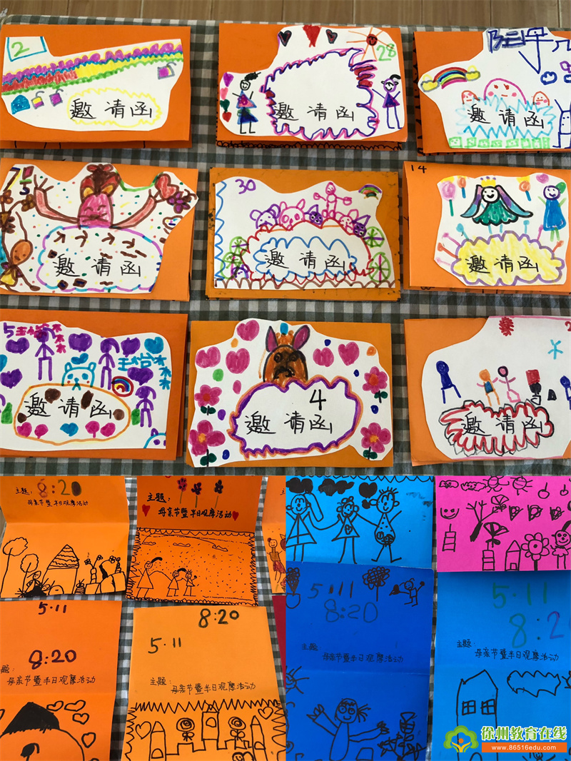 孩子们制作了丰富多样的邀请函,期待妈妈们的到来。