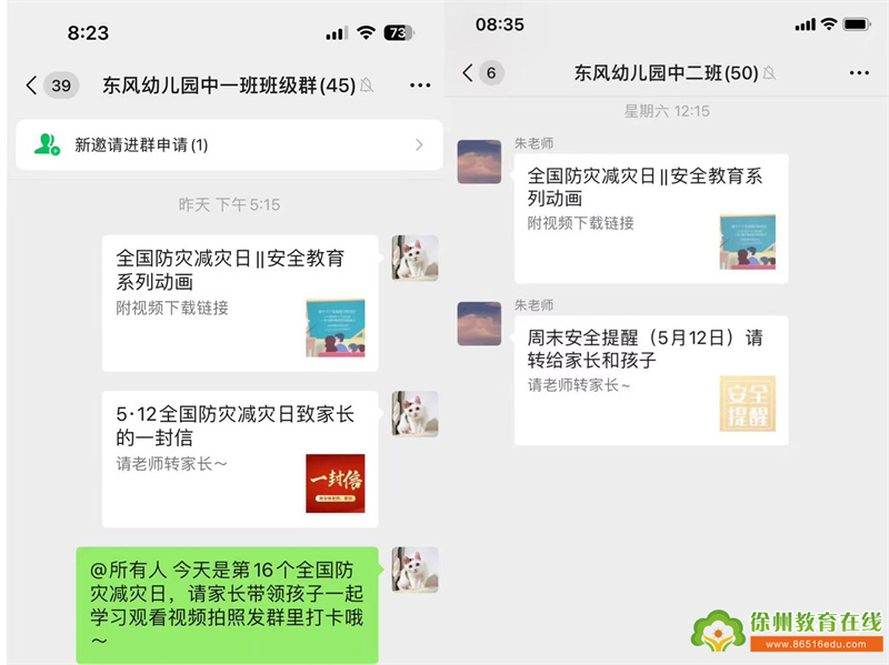各班老师通过情景演习、播放视频、动作示范、歌曲等多种形式,向幼儿讲解了防震、防火、避险尝试及疏散演练时的注意事项,让幼儿了解并掌握简单的自救技能。同时,还在各个班级群转发了相关学习视频,让家长带领孩子共同学习对安全隐患、自然灾害的认知,提高自救自护能力。