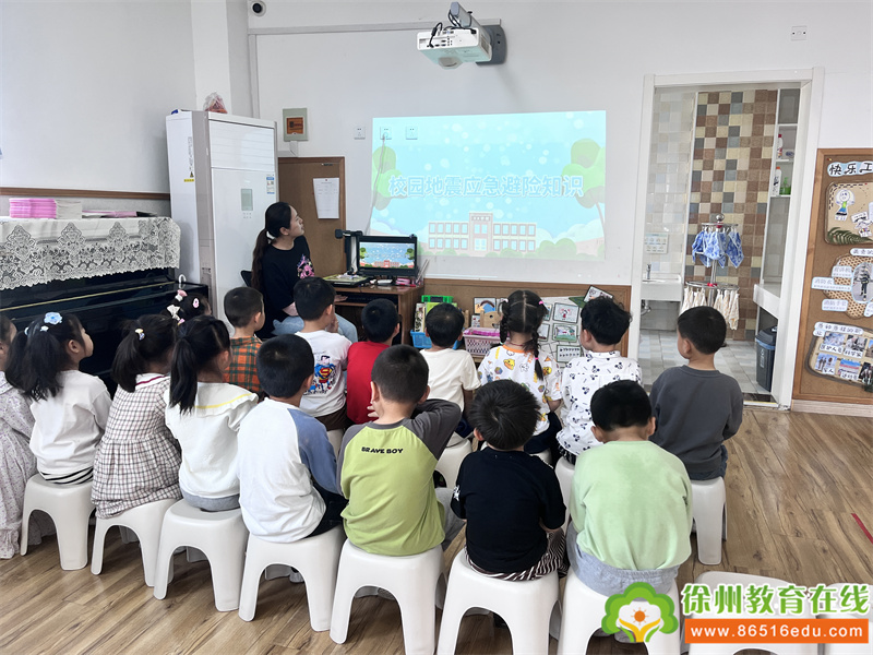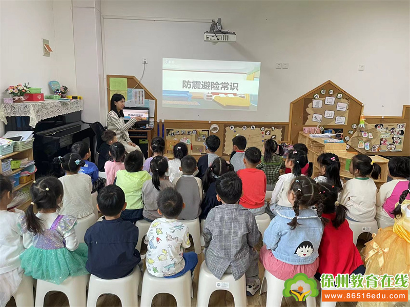 各班老师根据幼儿不同的年龄特点,通过图片、视频、情景模拟等多种形式为幼儿普及地震小常识,帮助幼儿掌握应急逃生的本领,知道地震来临时应如何保护自己、如何逃生,教育幼儿来地震了不慌张,听从指挥。