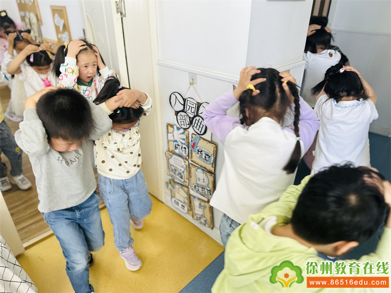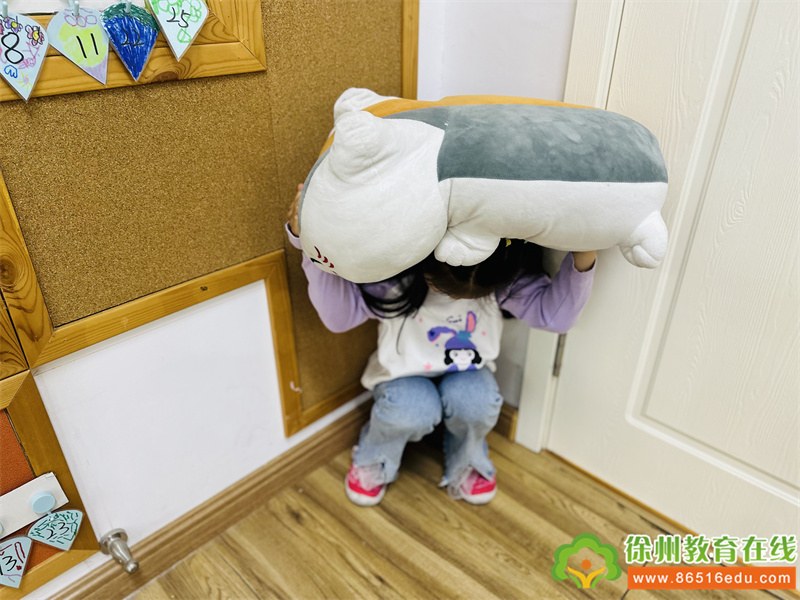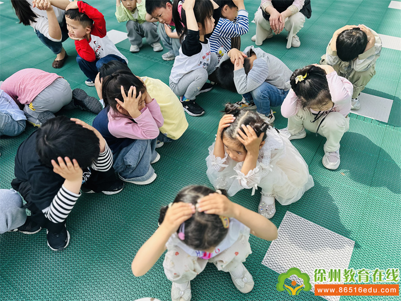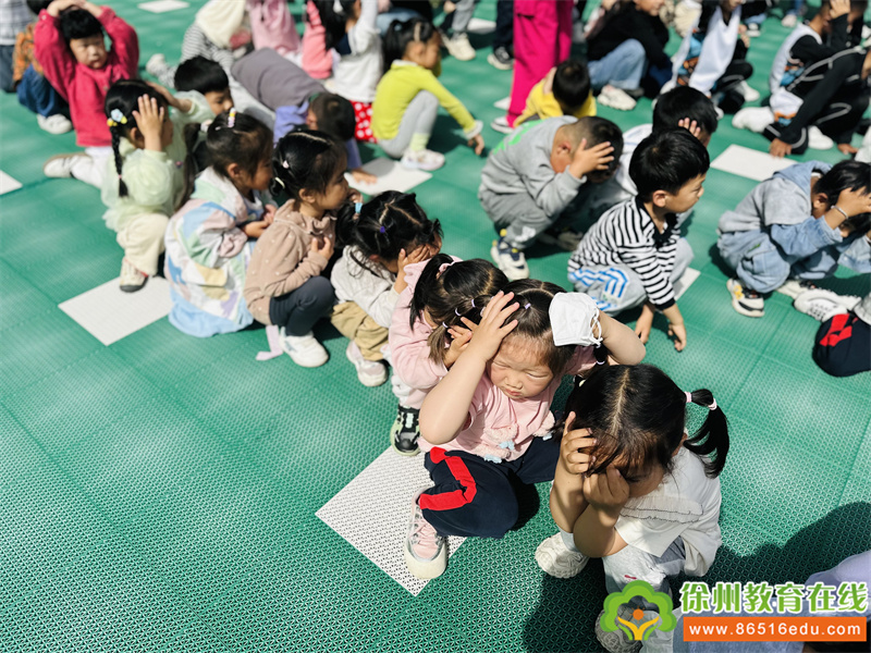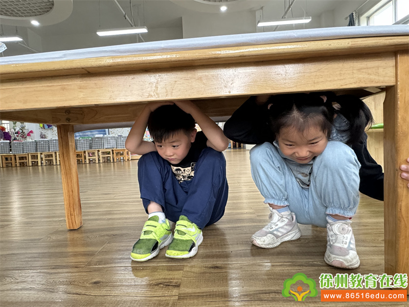 随着第一次警报信号响起,各班老师马上停止一切活动,孩子们迅速开始了紧急自护,有的快速钻到就近的桌子下,有的移动到墙角等安全三角区,抱头下蹲,保护身体重要部位。