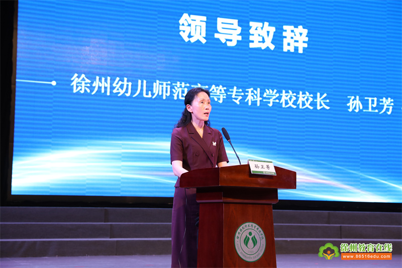 孙卫芳代表学校党政领导和全校师生员工向远道而来的领导、嘉宾、家长表示热烈的欢迎。她指出,家庭教育关乎儿童健康成长、家庭幸福与社会和谐,对一个国家、民族乃至整个人类社会的发展都具有深远的意义;希望以本次活动为契机,通过专家走进徐州市各个区、县的幼儿园,开展系列讲座和互动,进行零距离的教育服务与指导,推动“家园校社”协同,引导全社会“注重家庭、注重家教、注重家风”,创造符合中国式现代化特征的家庭教育支持服务体系,提升家长科学育儿水平,共同促进下一代健康成长。