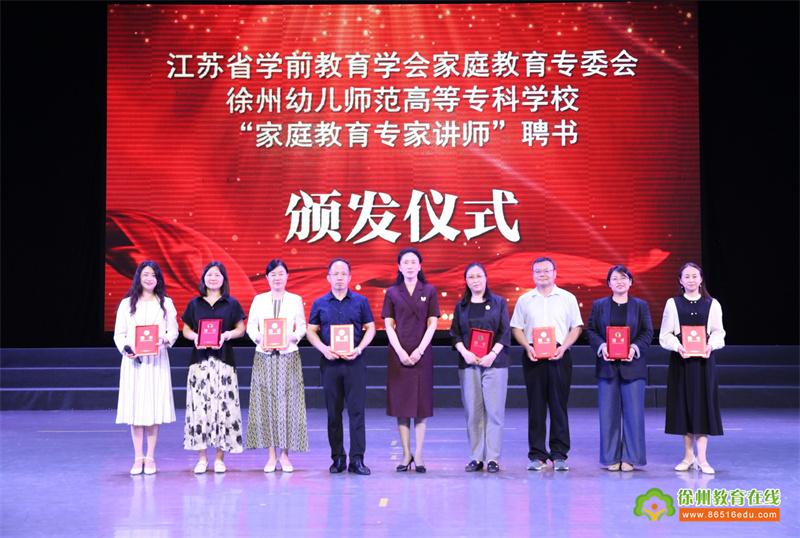 启动仪式上,孙卫芳为选聘的李飞、罗秋英、王雪环、李玉龙等八位专家、教授颁发江苏省学前教育学会家庭教育专委会和徐州幼专《家庭教育讲师》聘书。同时,孙卫芳、王宁为徐州市11个区、县授予了《家庭教育指导服务站》铜牌。