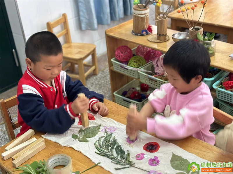为了传承与弘扬非遗文化,同时让孩子们更深入地感受大自然的美丽与奥妙,单集镇贺庄幼儿园小班准备了植物拓染的活动,活动不仅让孩子们亲身体验非遗文化的深厚底蕴,还让他们具象地感受到自然的多彩。