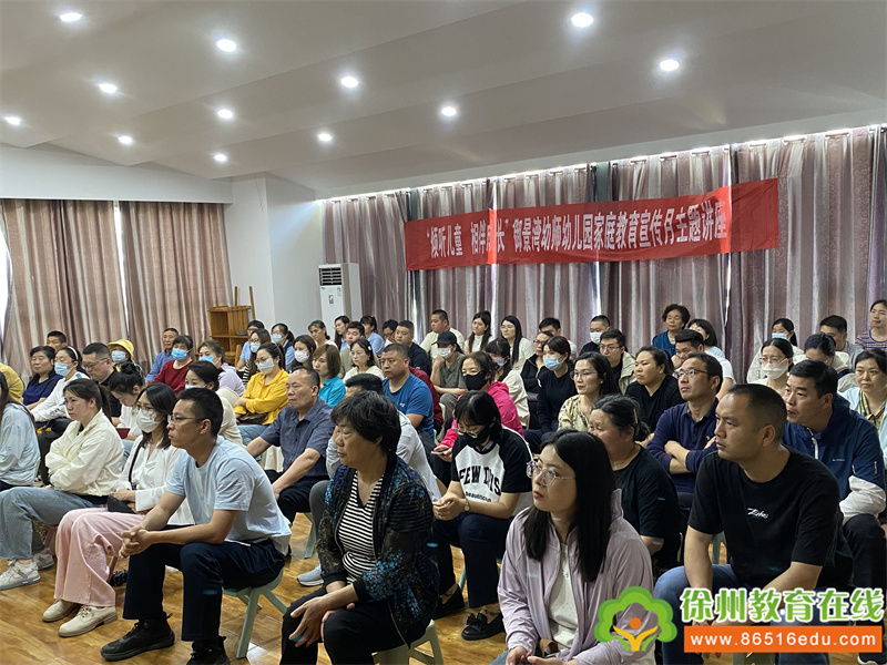 5月16日,徐州幼专“家庭教育公益行”走进御景湾幼儿园。江苏省学前教育学会家庭教育专委会主任、徐州幼专科研处处长李飞教授、科研处毛敏副处长、徐州幼师幼教集团饶鸿颖部长、御景湾幼儿园园长孟丽娜、部分教职工及幼儿家长100多人参加了活动。