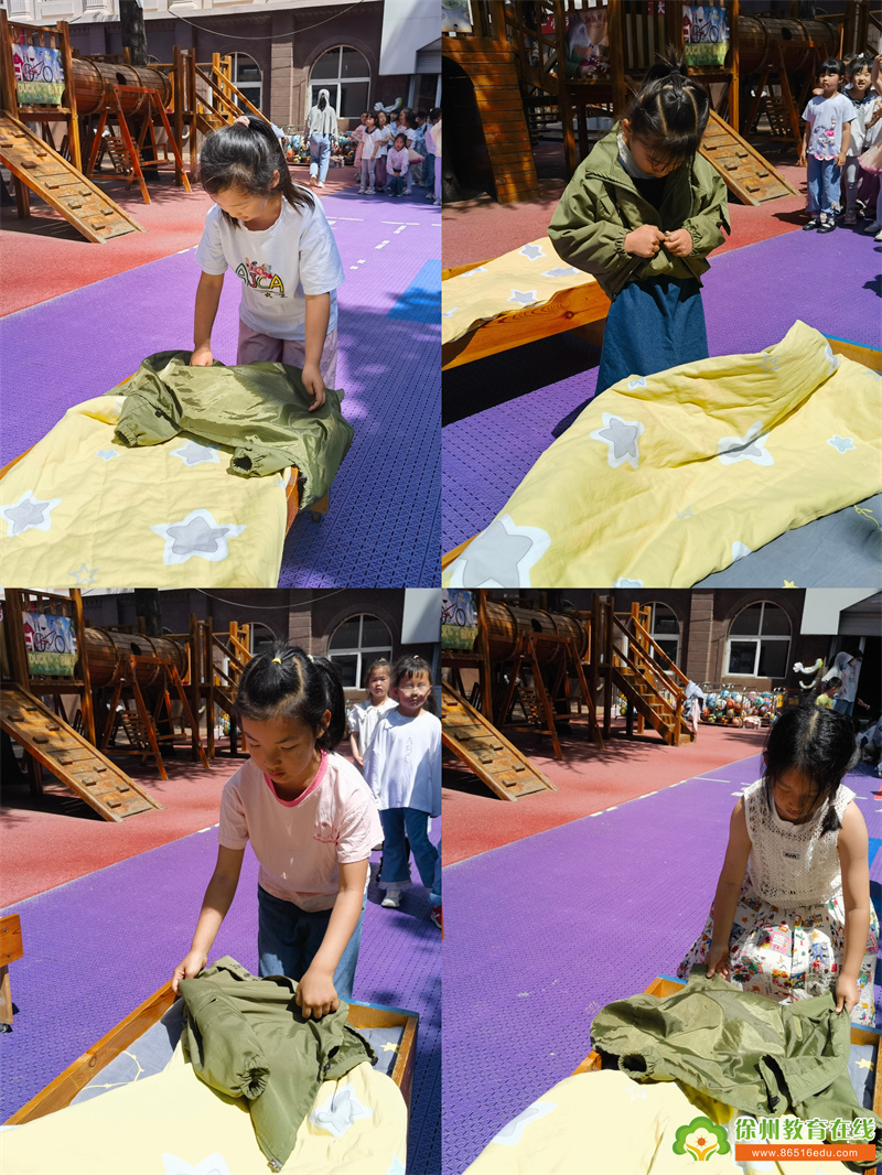 看,小选手们一听到哨声,便以最快的速度穿上衣服,拉好拉链,动作流畅,整理着装,一气呵成。