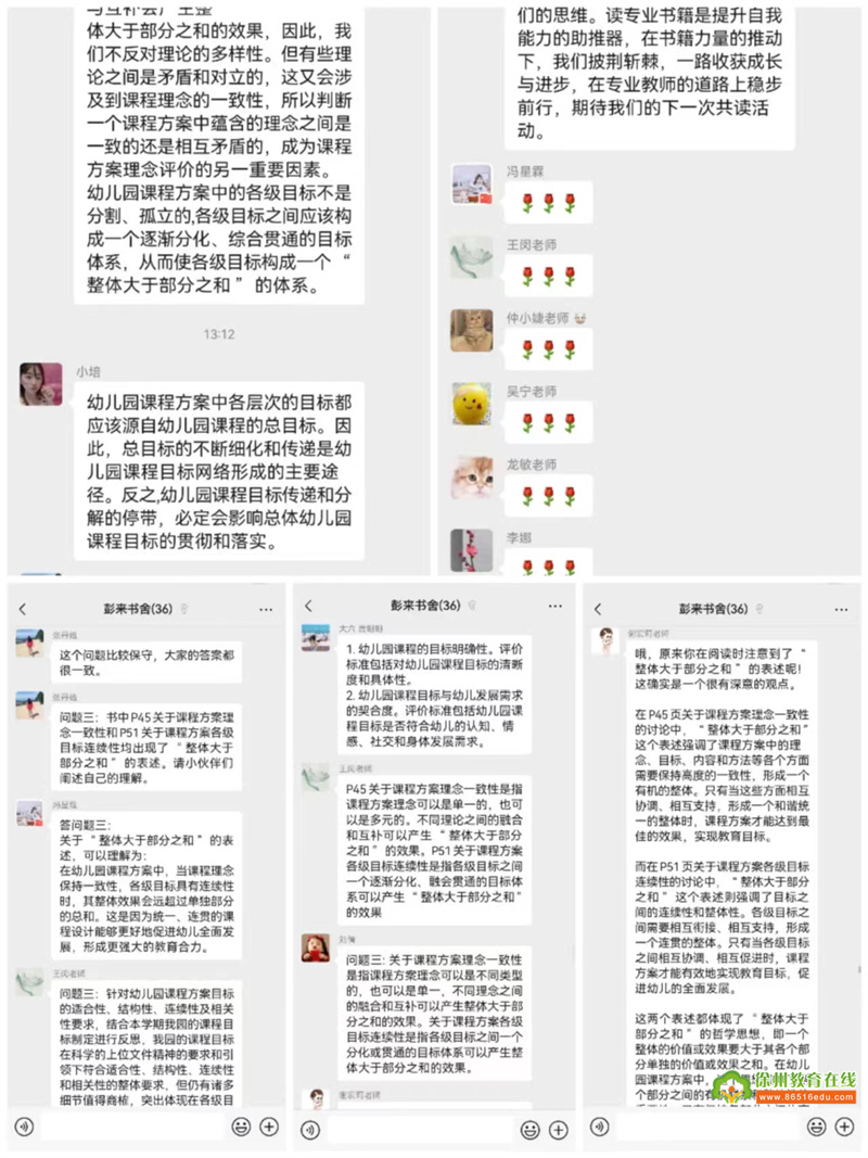 普希金说:“读书是最好的学习,追随伟大人物的思想,是最富有趣味的一门科学。”阅读是教师专业发展的必由之路,教师的成长需要从书籍中汲取教育智慧,反思教学实践,提升教学质量。5月17日在张老师的带领下,开展了《幼儿园课程评价》第三章线上研讨交流活动。