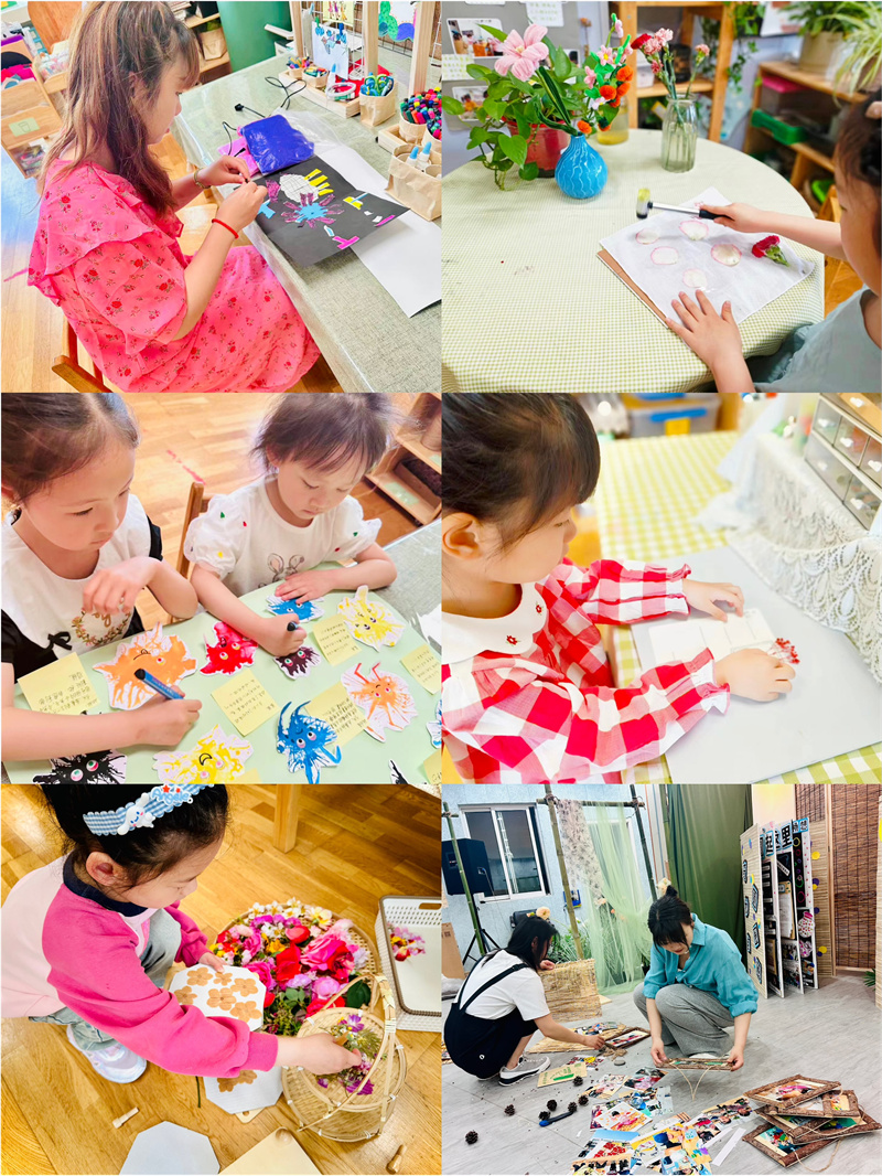 二实幼基于幼儿兴趣点,融入特色所形成的丰富多样的课程体系,师幼携手同置美轮美奂的宣传展板,展板采用新中式风格体现了文化的传承与沉淀,森系元素体现二实幼亲近自然、自然生长的理念,使人感受到自然的亲和与活力,一个兼具人文底蕴和自然之美的空间,让童年充满无限可能。