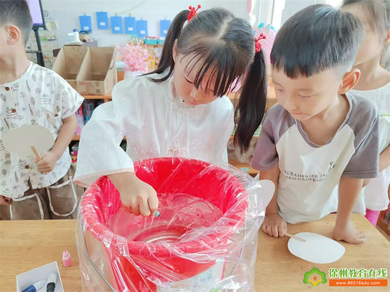 以“漆”为画,以“扇”为纸,大班的孩子们和老师用五彩斑斓的颜色漆染出多彩的漆扇,每一个作品都是孩子们对节日最美好的诠释,也是他们纯真情感的流露。