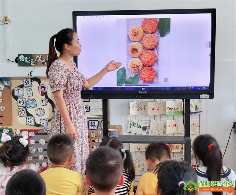老师通过多种活动,让孩子们知道农历八月十五是中秋节,了解中秋节的来历、习俗及月饼的寓意。