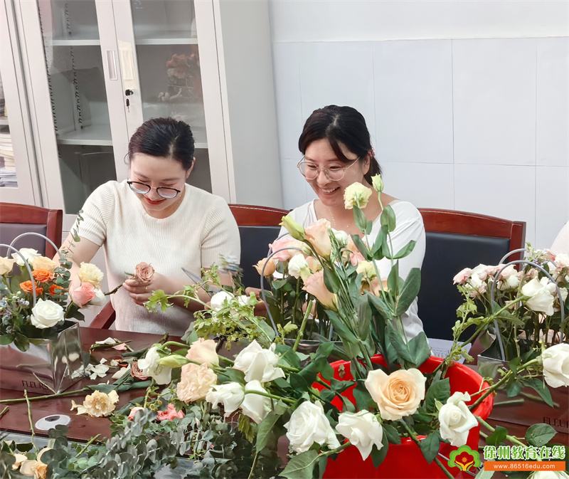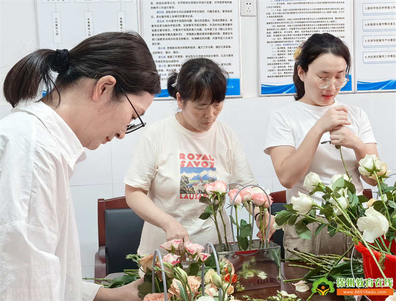 接着,教师们循着花香踏进花草世界,聆听花草絮语,在欢声笑语中开始了花艺活动。指尖曼妙,在教师们“师”情“花”意的巧手打理下,一束束风格独特、精美绝伦的花艺作品出炉啦!