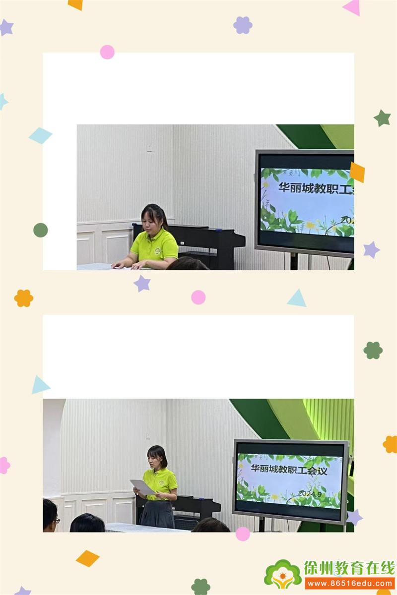 金秋时节,清风送爽,在这个充满喜悦丰收的季节,为确保各项工作快速步入正轨,扎实做好开学工作,华丽城幼儿园于9月6日召开了新学期全体教职工大会。会议由园长孙楚楚主持,首先由刘校介绍出席今天会议的各位领导,接下来由园长邱艳讲话,邱园长对新学期的工作给予厚望,共同开创新局面。