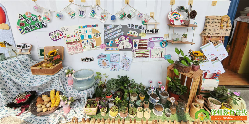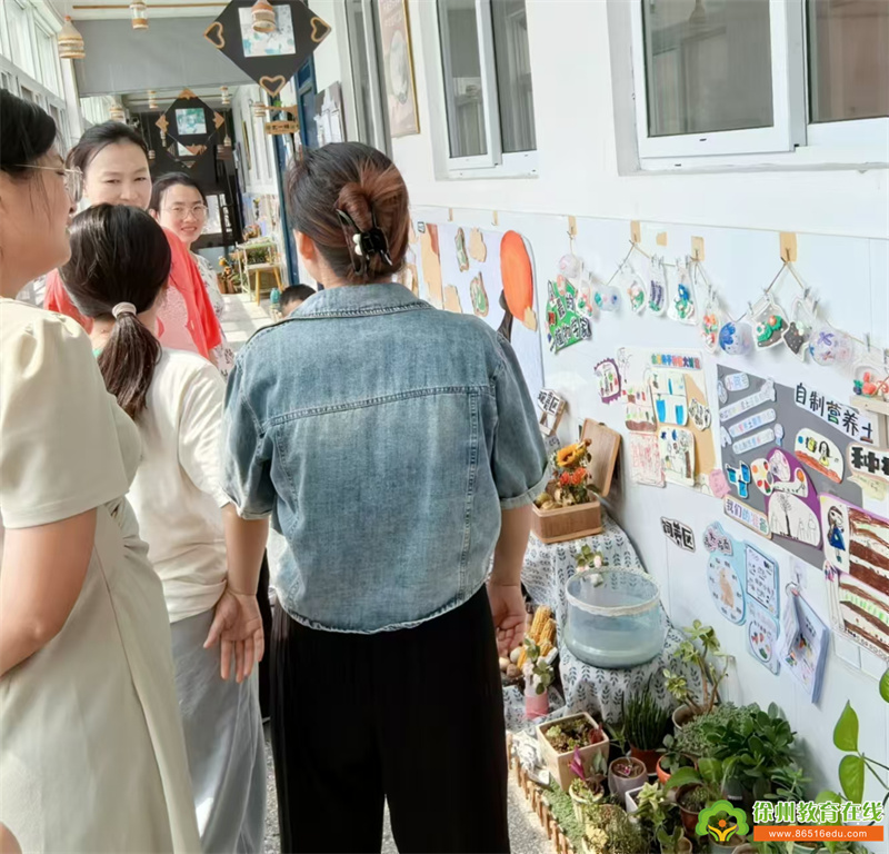 秉持着季节性、丰富性、艺术性、探索性的特点,各班老师和孩子们充分利用身边的资源,从孩子的年龄特点出发,因地制宜对班级自然角进行了精心规划和布置,包括土培区、水培区、观赏区、饲养区等,动植物种类丰富,生态环境模拟自然,各类物品摆放高低错落,打造了别具一格的自然一隅。方寸之间有天地,我们惊叹于在小小的植物角中,不仅植物在茂盛的生长,可爱的小动物们也在其中跟它们作伴!金鱼、乌龟、红薯、土豆在小朋友的悉心照料下不断成长,呈现出一片欣欣向荣的景象。在观摩过程中,老师们也对植物角创设与材料投放等方面,提出了建设性意见和创新性想法。