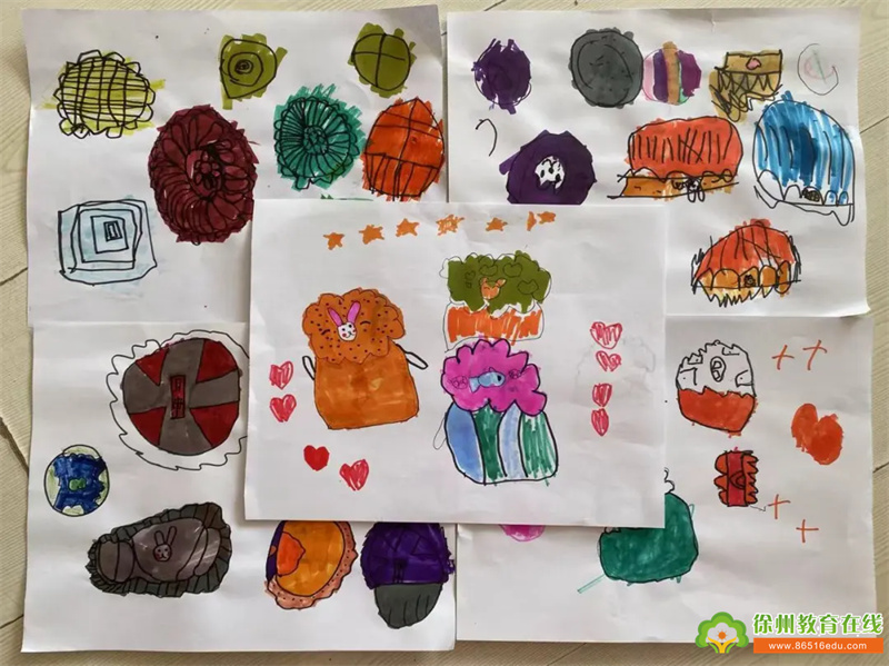 中秋节的文化符号有很多,玉兔、嫦娥、圆月、月饼......在浓浓的节日氛围中,孩子们捏捏、压压、涂涂、画画。一颗颗充盈喜悦的童心绘制了一张张可爱的画卷。