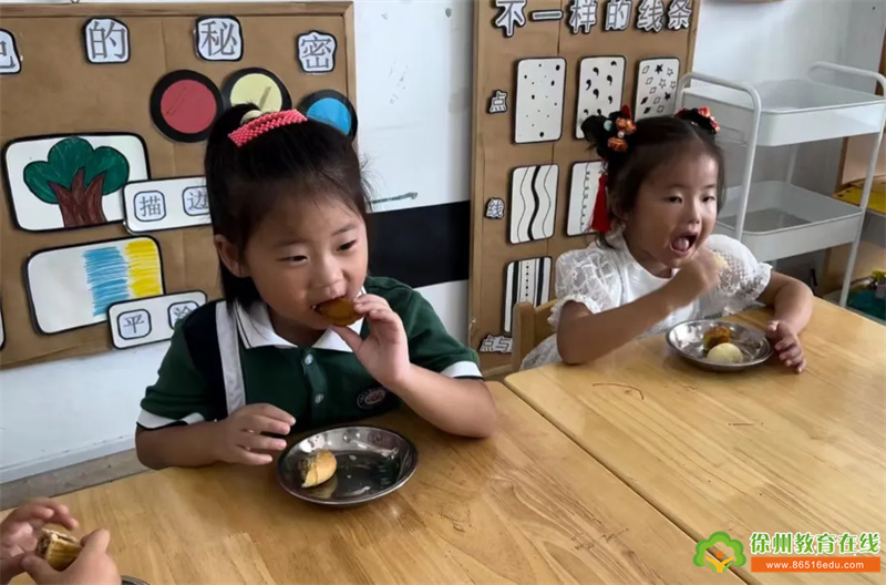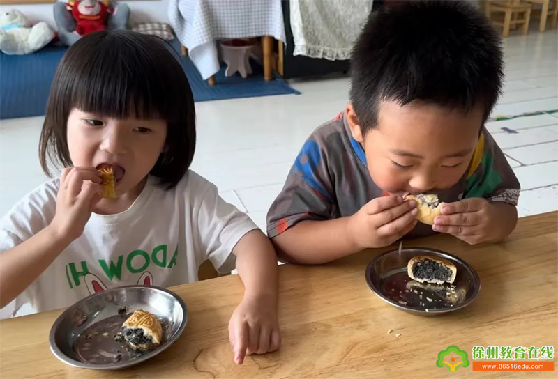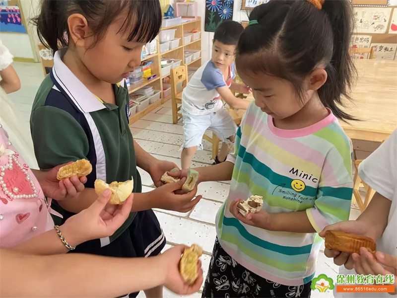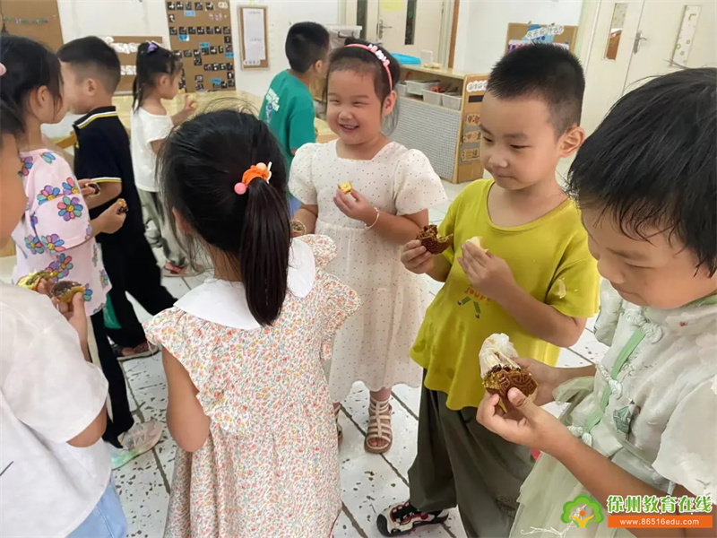 孩子们品尝着芳香四溢的月饼,你一口、我一口,品尝着香甜的美味,享受着同伴和老师们的祝福,分享者节日的快乐。