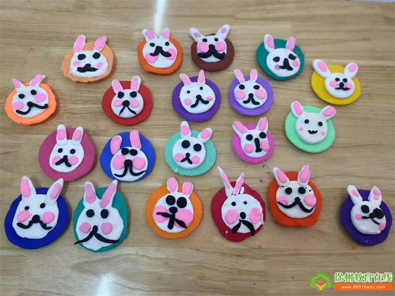 孩子们用稚嫩的小手制作者属于自己的兔子挂件。五颜六色的彩泥变成了一只只可爱的小兔子,这些挂件不仅美化了教室,更美化了孩子们对传统文化的热爱。