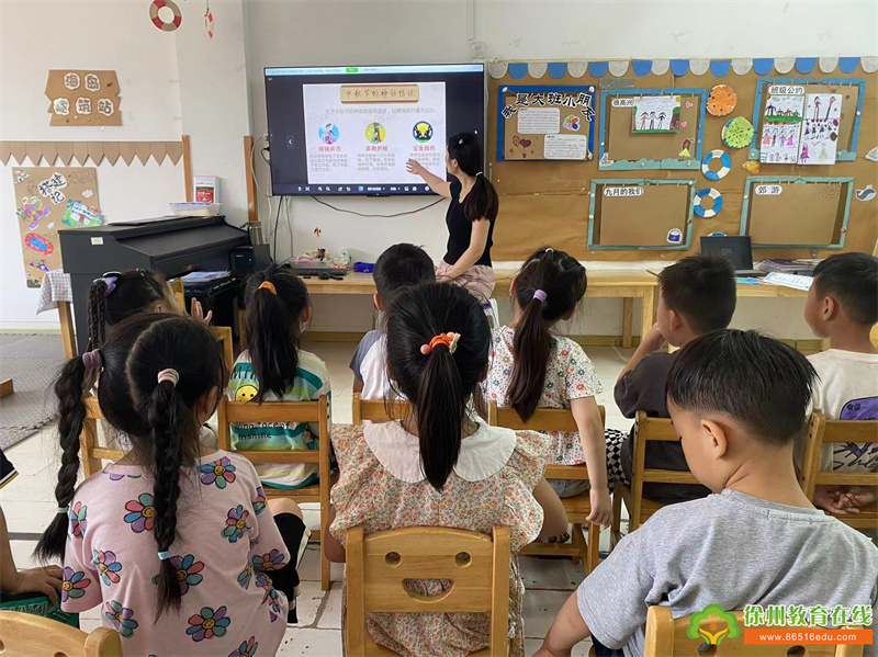 中秋节是中国四大传统节日之一,中秋节自古便有祭月、赏月、吃月饼等民俗。老师们通过播放视频、图片,欣赏古诗和儿歌等方式进行中秋节的主题教育活动,为孩子们揭开了中秋节的神秘面纱,体会了中秋节传统文化的韵味。