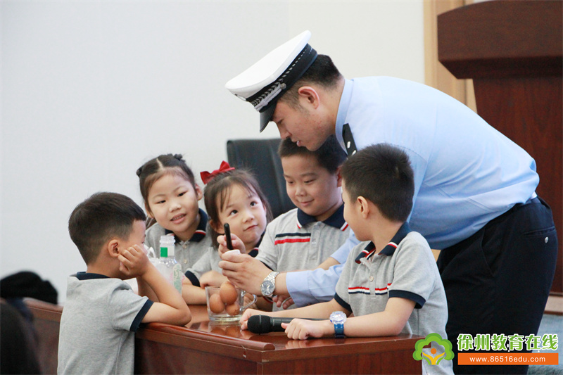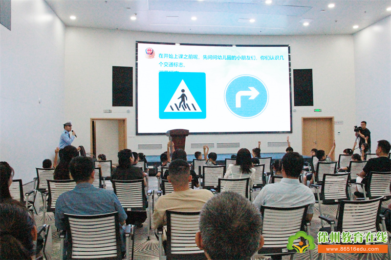 在徐州广电的新闻发布厅内,来自徐州交警支队的刘鑫尧警官为公园巷幼儿园的小朋友及家长们讲解普及交通安全知识。“正确开车门的方式是什么?”、“禁停和禁行标志如何分辨?”、“过马路时应该快速还是匀速?”,针对孩子们日常交通出行特点,刘警官分别从行走安全、骑车安全、乘车安全、交通避险等方面讲解了交通安全知识,用通俗易懂的语言深入浅出地向家长及孩子们讲解了交通信号灯、人行横道线等标志标线的作用、日常出行交通安全小常识、教育孩子们如何安全行走、安全乘车等交通安全知识。