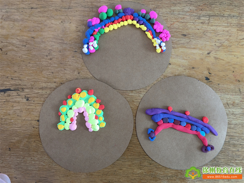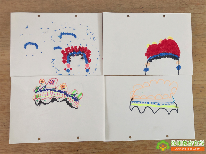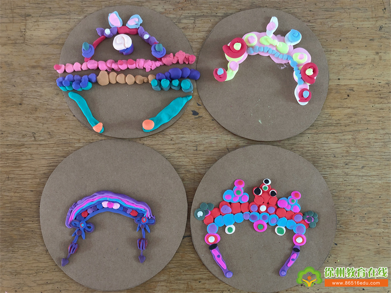 孩子们自己用彩泥装饰冠帽,来看看他们的创意作品吧!