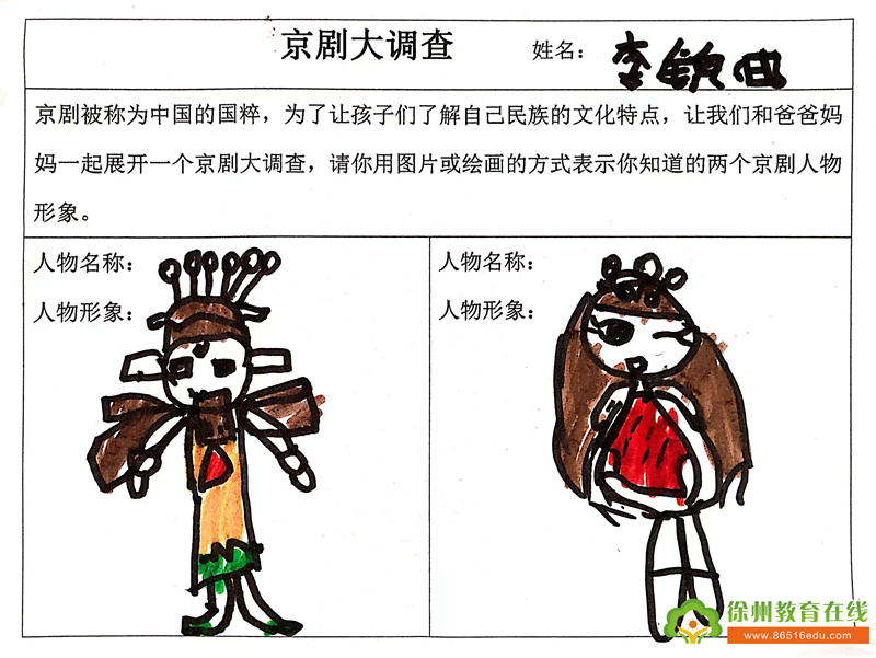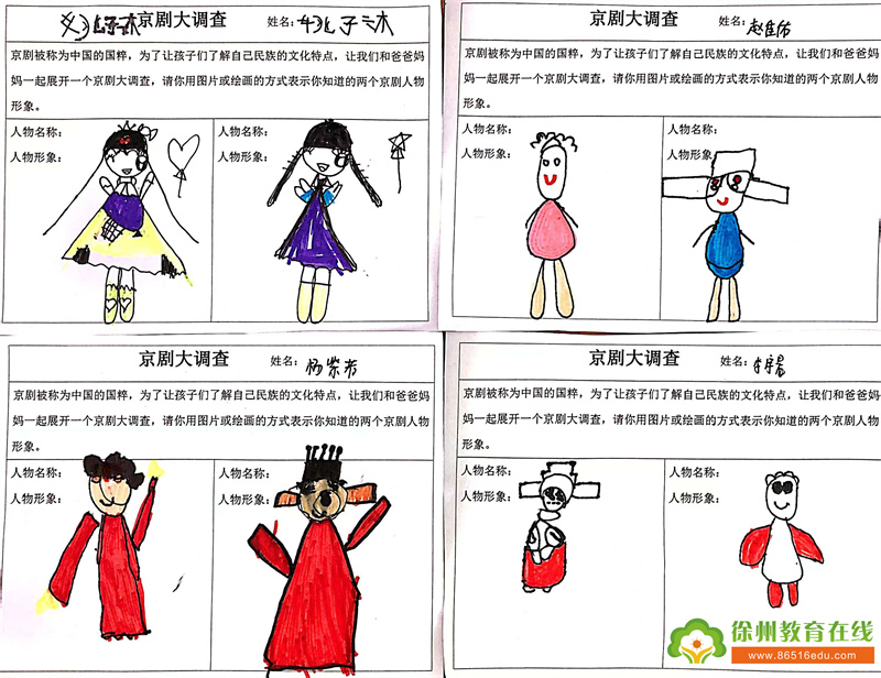 孩子们的日常生活中较少能接触京剧,他们多是从电视中或是网络上观看京剧表演、了解京剧。每一种表演都有很多角色,有男孩也有女孩。孩子们回家后和爸爸妈妈一起进行了京剧大调查。