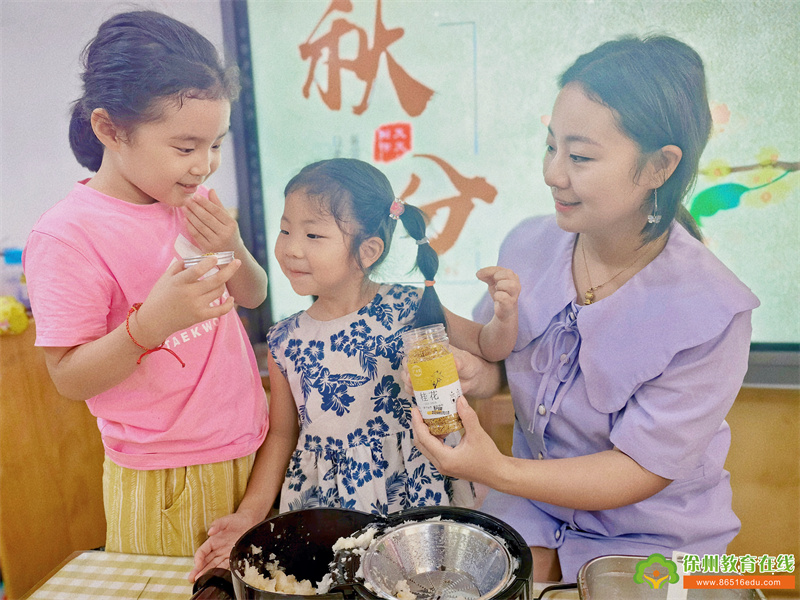 孩子们动手体验制作秋梨冻,感受到了秋分是一个美好的节气,昼夜等长,它带给我们一半温暖,一半清凉。希望大家在这个季节里能够享受生活,充实自己,感受秋天的美好!