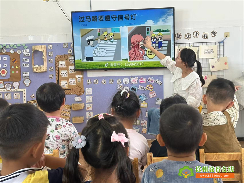 为了加强对幼儿的交通安全教育,增强幼儿的交通安全意识,教师们带着孩子一起学习交通安全知识。