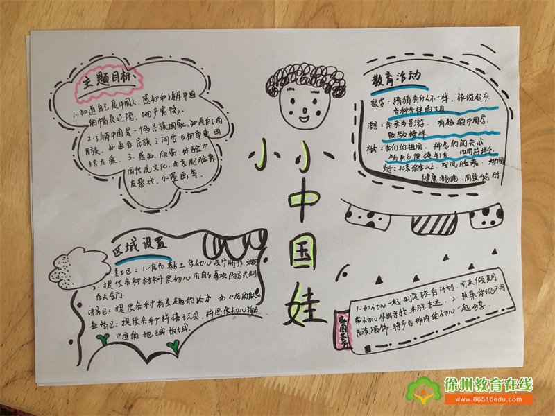 大班组教师设计了“小小中国娃”的主题活动。幼儿期是幼儿心智发展的关键期,也是其国家意识、民族情感的启蒙阶段。《3-6岁儿童学习与发展指南》社会领域中,明确提出了“爱祖国”的培养目标。该主题围绕“我知道的中国”“中国大家庭”“感受中国传统文化”“比较中国人与外国人”四条线索开展,从幼儿已有的关于中国的认识和经验出发,使幼儿逐步了解中国及其文化,初步感知身为中国人的自豪。