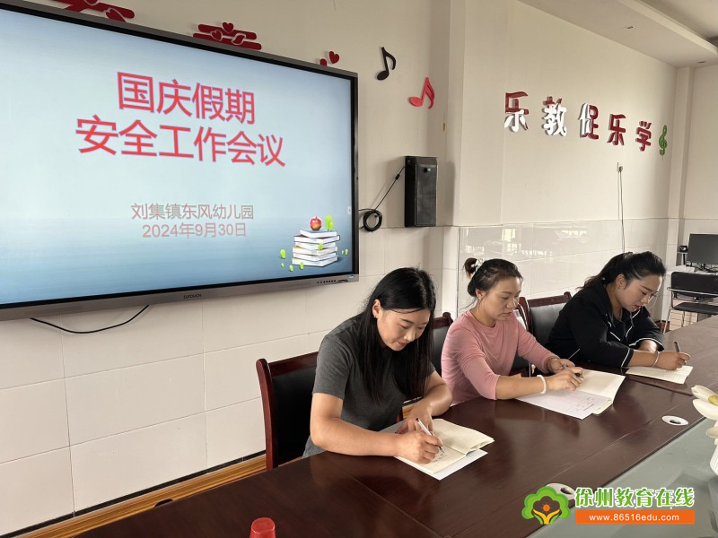 国庆假期来临之际,为了严格落实各项安全防范措施,增强师生的安全意识,确保广大师生度过一个欢乐、祥和、平安的节日,2024年9月30日,刘集镇东风幼儿园召开国庆假期安全工作会议,全面部署安排假期安全工作。
