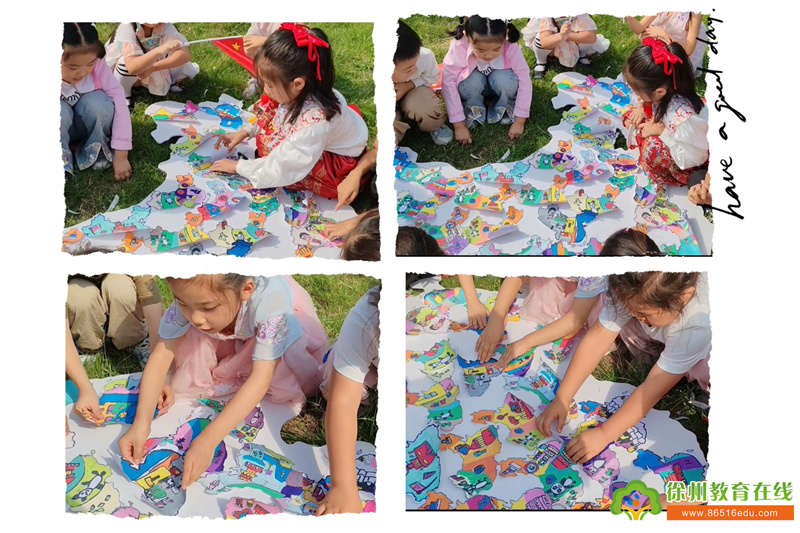 祖国山河壮丽,在这样特别的日子里,孩子们用心、动脑,亲手制作“中国创意版图”,把对祖国的热爱融入祖国的大好河山。