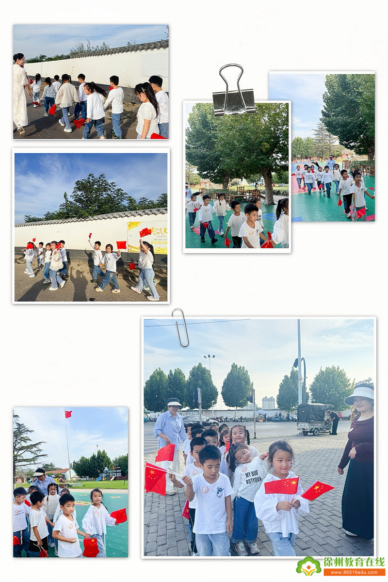 爱国户外实践活动“送您一面小国旗”,孩子们走出幼儿园,在表达自己对祖国热爱的同时,也把这份炽热传递给身边的人。让红歌传遍大街小巷,让小小的五星红旗迎风飘扬,传承着一份份真挚的爱国情。