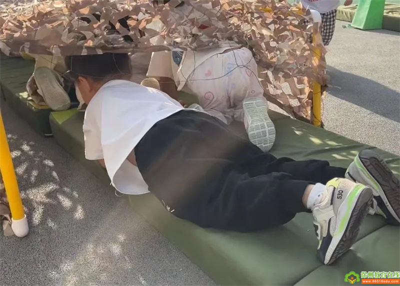 小朋友们在参与、体验和感知中学习坚韧勇敢,将爱国的种子深深根植于心底,在重重关卡中不断挑战自身。胜利的喜悦是小朋友们不懈努力和艰苦斗争的见证。在他们锐不可挡、奋不顾身的脚步和欢快的歌声中迎来了“胜利”。