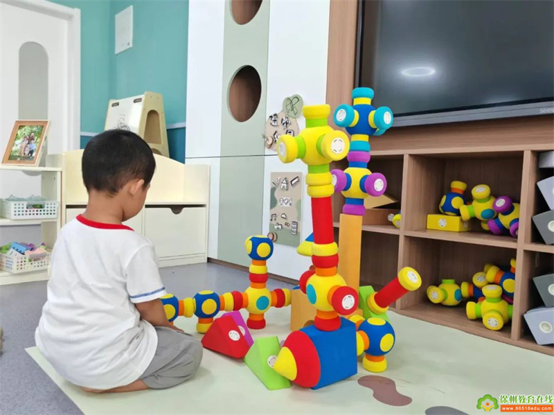 托育的孩子虽然年龄尚小,但他们发挥想象力,动手搭建心中的祖国。长城、天安门、天坛……