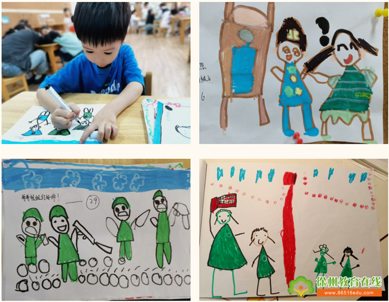 活动结束后,孩子们结合自身的体会与感悟,分享自己的所见所感,在画册上记录下这次难忘的经历,用表征的形式表达对空军战士的敬意和对祖国的热爱。