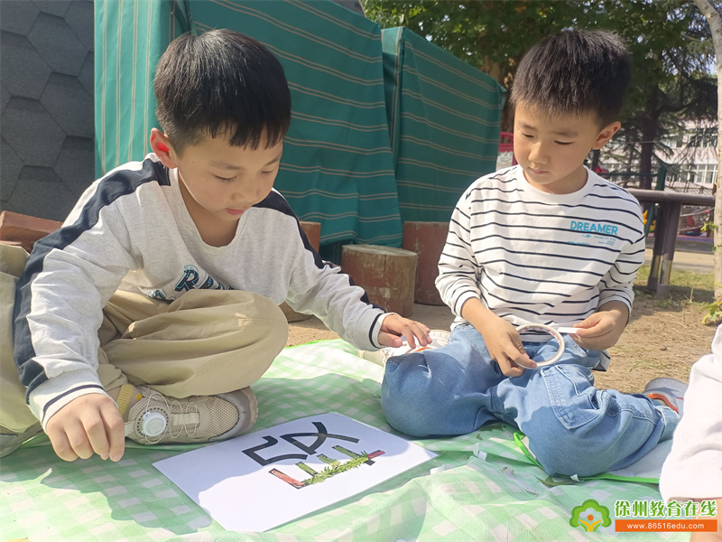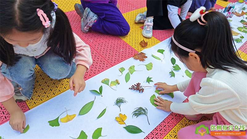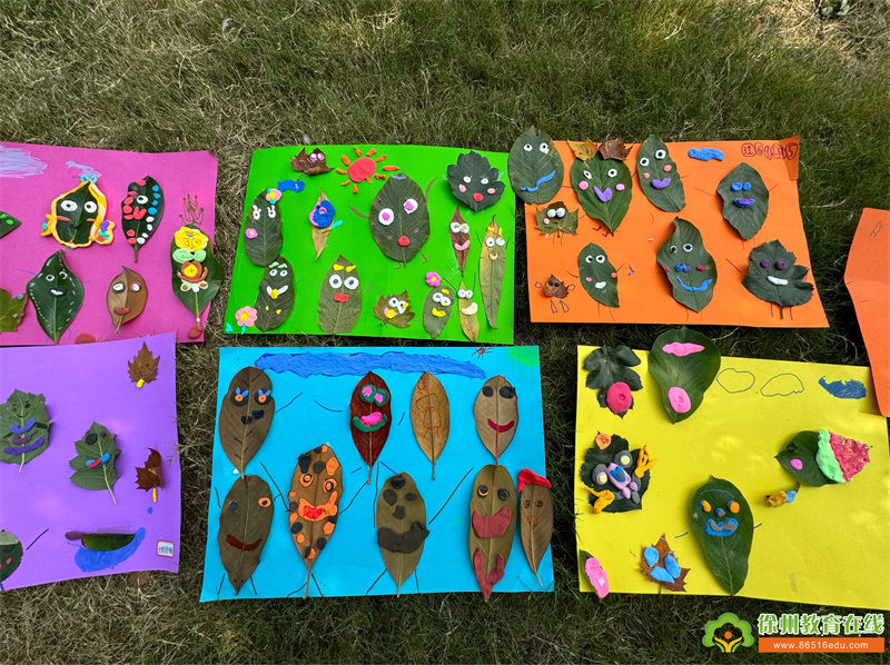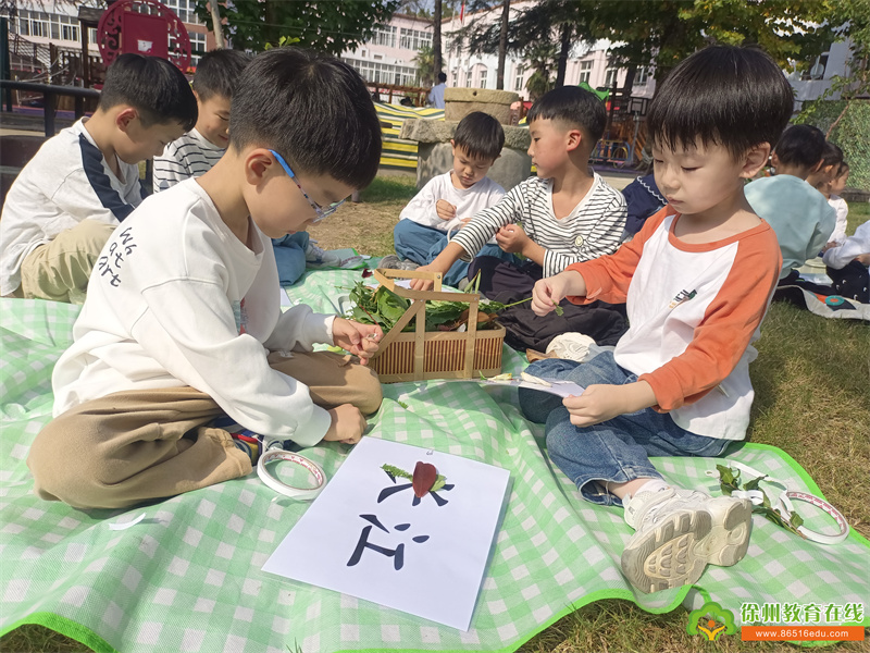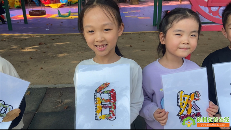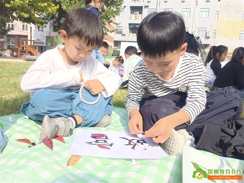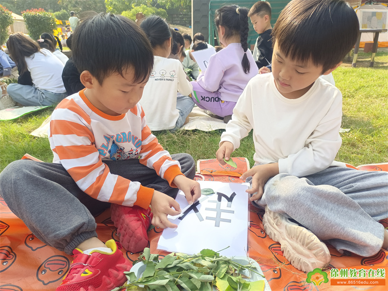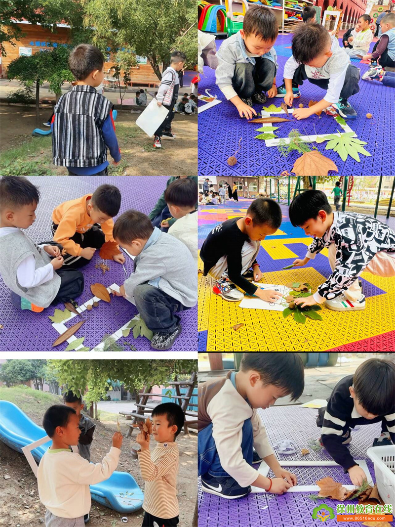 大一班的孩子们在草地上捡拾着各式各样的树叶,然后将它们粘贴在画纸上,形成一幅幅生动的画面。在粘贴的过程中,孩子们还学习了与树叶相关的汉字,让学习变得生动有趣。