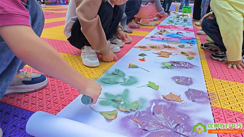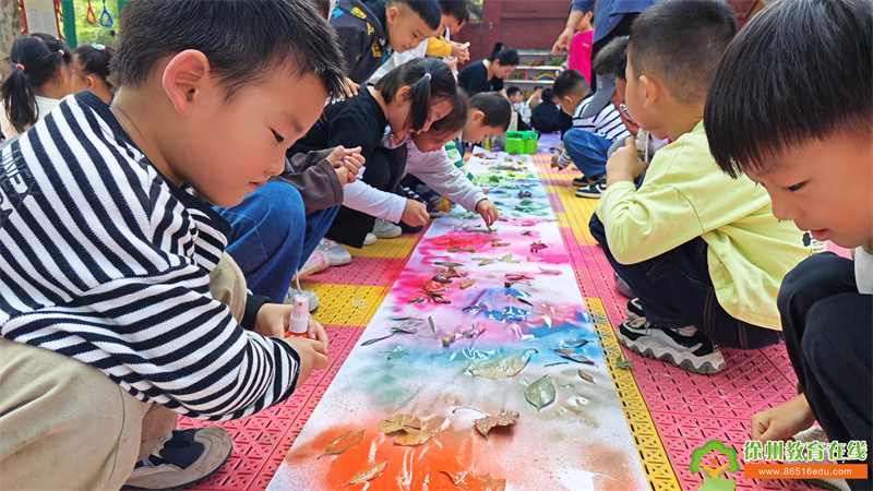 大五班的孩子们用喷壶将颜料喷洒在树叶上,形成了一幅幅美丽的喷画作品。这些作品不仅展现了孩子们的创造力,更让他们感受到了艺术带来的乐趣。