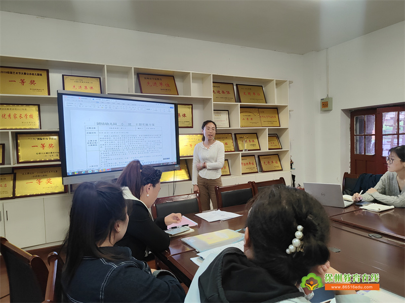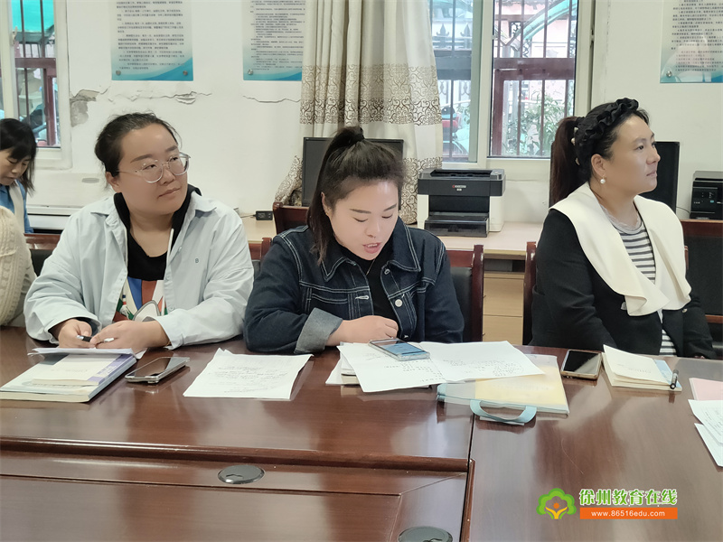 中班组的老师们在教研组长张贝贝老师带领下,从主题开展和教育目标出发,以《夸家乡》作为开头引子,引出每个班级在课程目标、主题环创、资源利用、家长配合、活动安排、课程反思等方面的具体实施方案和优缺点。大家一致认为:中班在音乐欣赏和音乐课程设置方面有些薄弱。孟主任针对中班年级组的问题,也一一做了回应和解决。大班和小班组的老师们也积极的进行了讨论,最后提出了解决的可行性方案。