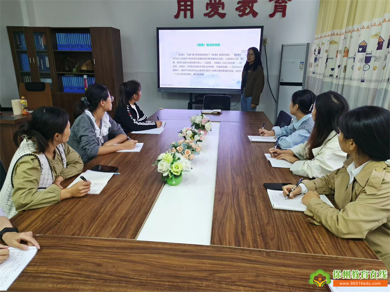 首先贺主任带着大家一起观看学习《3-6岁儿童学习与发展指南》解读,并指出学习《指南》不是一蹴而就,从理论到实践的落实是一个长期的过程,需要所有老师能把《指南》精神内化于心,更好的运用到日常保教工作中。活动中,大家对于实际工作中面对不同年龄阶段、不同领域幼儿的发展目标进行更深的解读,老师们都很用心的在讨论、学习。