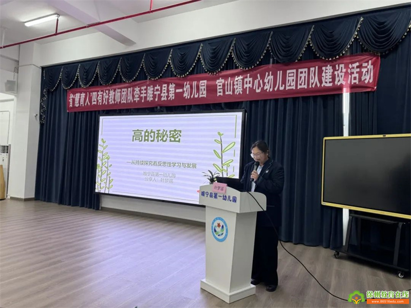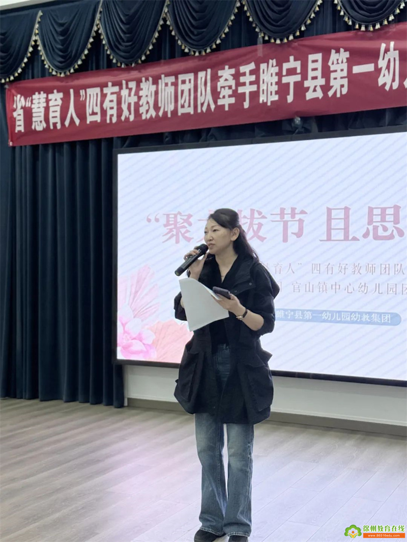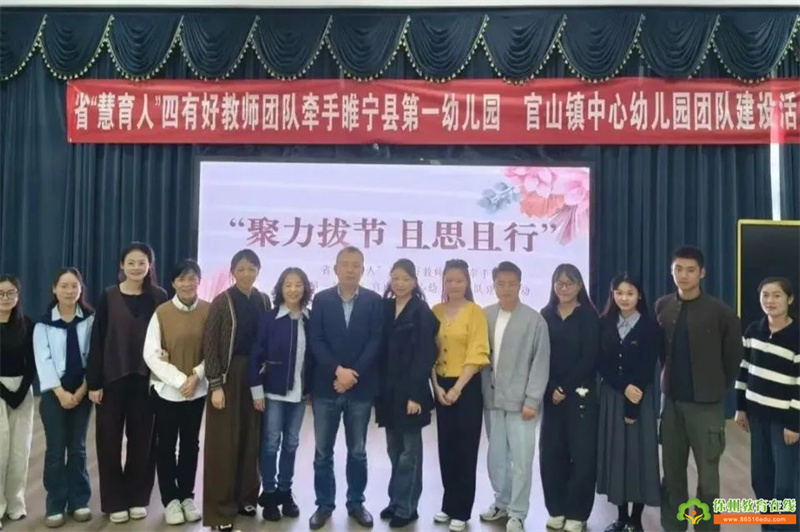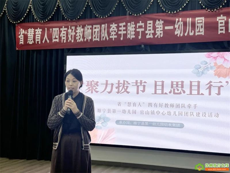 近日,在吴文秋园长的带领下,徐州市公园巷幼儿园“慧育人”四有好教师团队来到睢宁县第一幼儿园和官山镇中心幼儿园共同开展联合教研活动。睢宁县第一幼儿园吴雪峰园长对公园巷幼儿园一行及出席本次活动的领导、同仁表示热烈的欢迎和衷心的感谢!