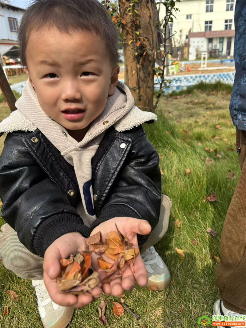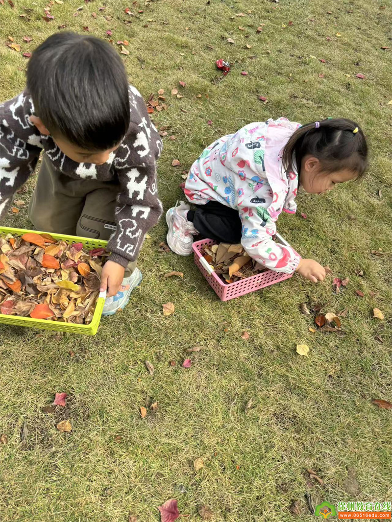 瞧!小朋友们捡落叶时的样子多认真,仔细寻找,小朋友都积极参与,孩子们的欢声笑语都在空气中回荡。他们时而追逐、时而弯腰捡树叶、时而碰头轻声交流着“我捡的秋叶是绿色的”、“我的秋叶已经变黄了”……孩子们像群小鸟飞在树林里、草地上。每个小朋友都参与其中,开心无比。